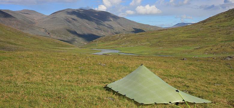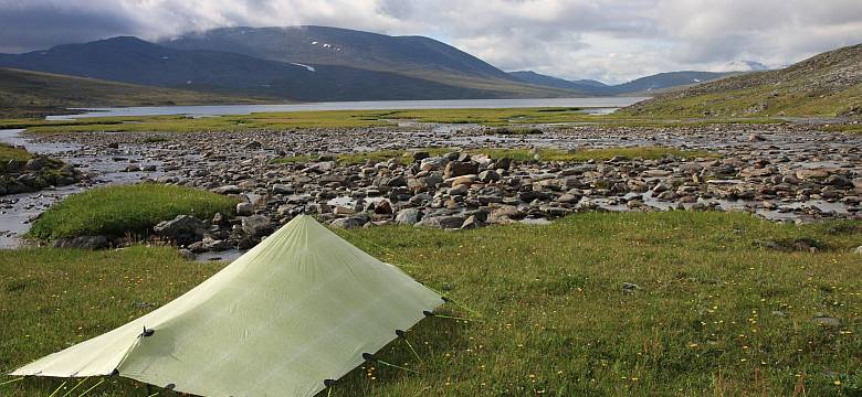 Hittar en behaglig tältplats på torr fin gräsmark.