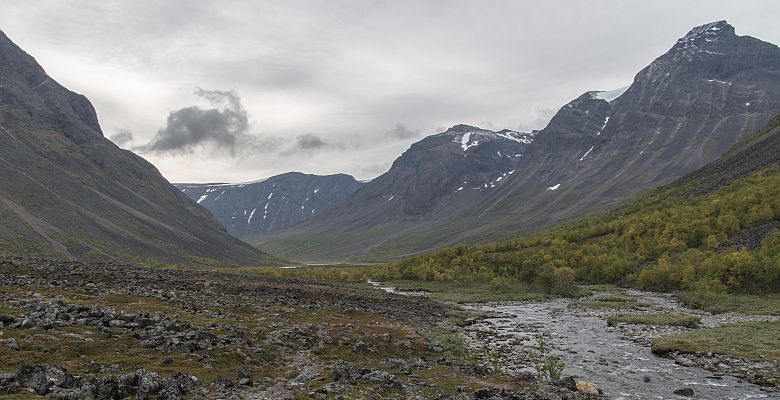 Till slut så öppnar landskapet upp igen och jag kommer fram till Alesjaurestugorna.