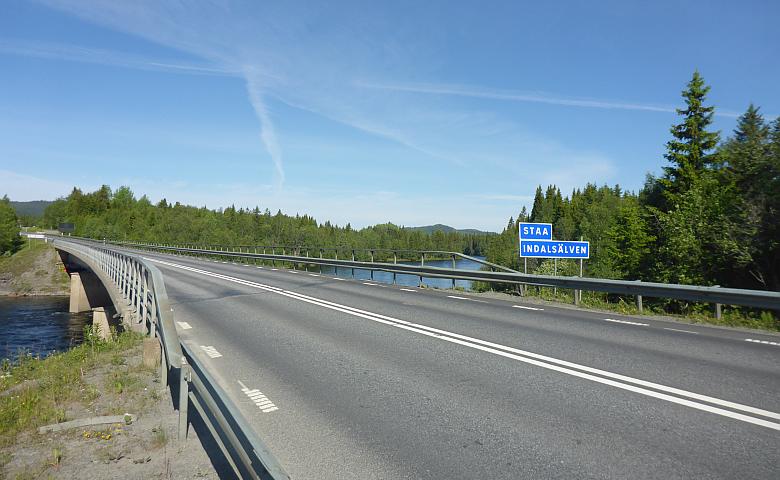 E14-bron över Indalsälven känns inte helt säker till fots, men jag har tur och två tunga långtradare får inte möte samtidigt som jag passerar.