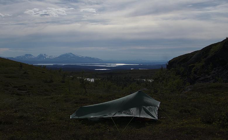 Efter att skogen slutar och kalfjället tar vid så ger knotten upp och jag kan slå läger för en fin kväll uppe på Hammerdalsfjället.