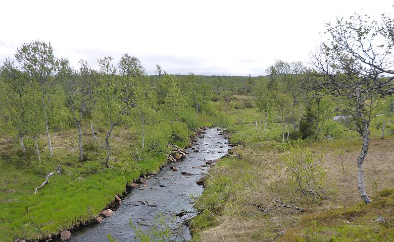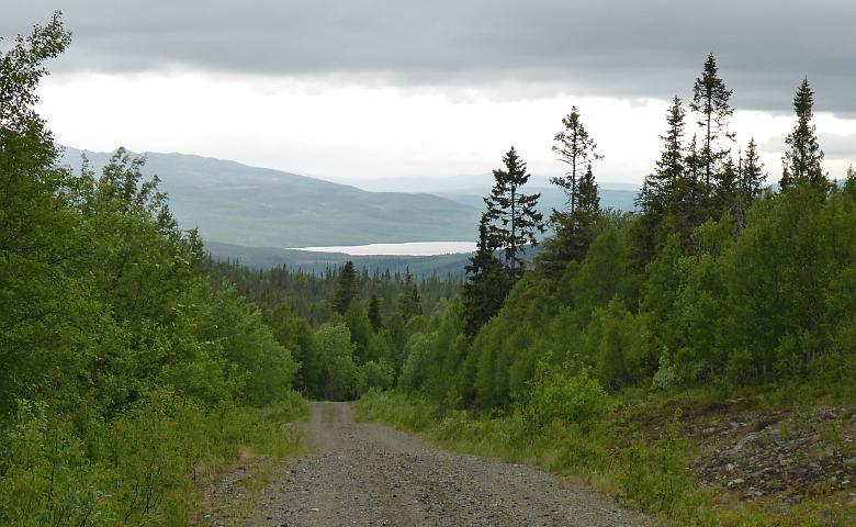 Det är lite besvärligt att ta sig förbi rengärdena ovanför Brattliden, men sedan så är det grusväg hela vägen ner till Gäddede.