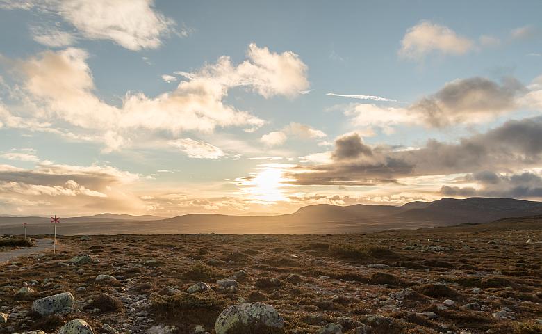 Jag går över den första kullen utefter stigen mot Storvätteshågna och slår läger vid Foskbäcken.